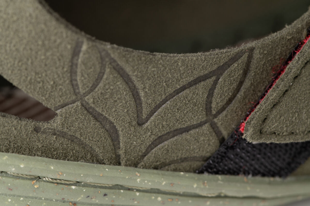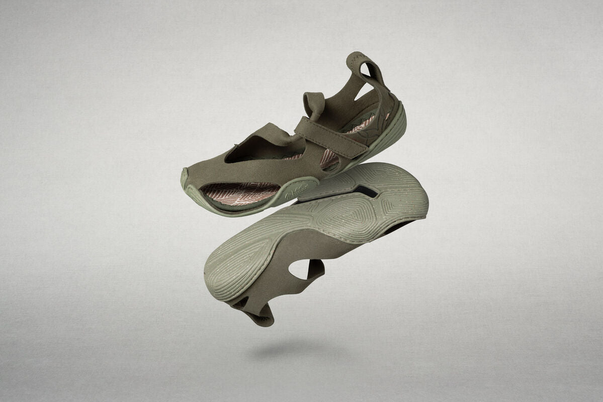 The design relies on a delicate fit and few individual parts. Thanks to the integrated heel loop, the sandal requires very few seams. This saves resources and contributes to the durability of the lightweight.