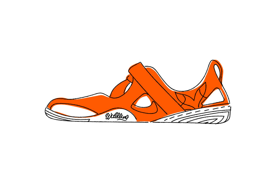 The light and airy feel of the Feder is the result of intensive work on development and is based on Wildling's experience with its first sandal, the Pebble. One insight was that the Feder design should exert even less lateral pressure on the big toe than the previous model.