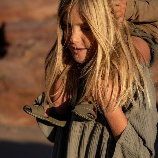 Sunshine and blue skies above, and nature in bloom below: as the days get longer and the temperatures rise, we take a deep breath and enjoy the warm sunshine on our skin. With the start of the outdoor season, we can also allow our feet more freedom: Feder sandals accompany us on our adventures - whether at the playground, in a café or free running.