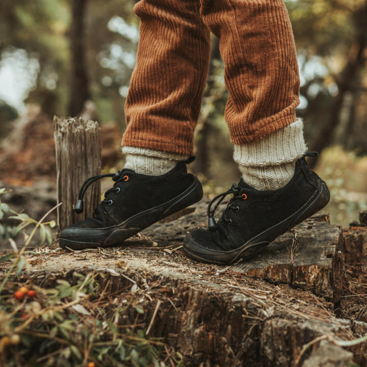 How can this barefoot sensation be combined with the protection kids need to experience the joy of wild adventures and the natural freedom of movement? Wildling minimal shoes are light and flexible, and they adapt to the shape of the foot. They feature space for the foot to roll in a natural, healthy manner and facilitate an intuitive sense for walking.