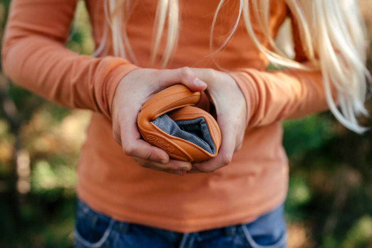 Arnow's outer material is made from 100 percent recycled cotton in a classic twill weave, which comes from the earlier production of Wildling Arni. The material has an extremely tight weave combined with a membrane to help repel water. The Shell Sole provides protection against moisture from below, even when April surprises us with a rain shower.