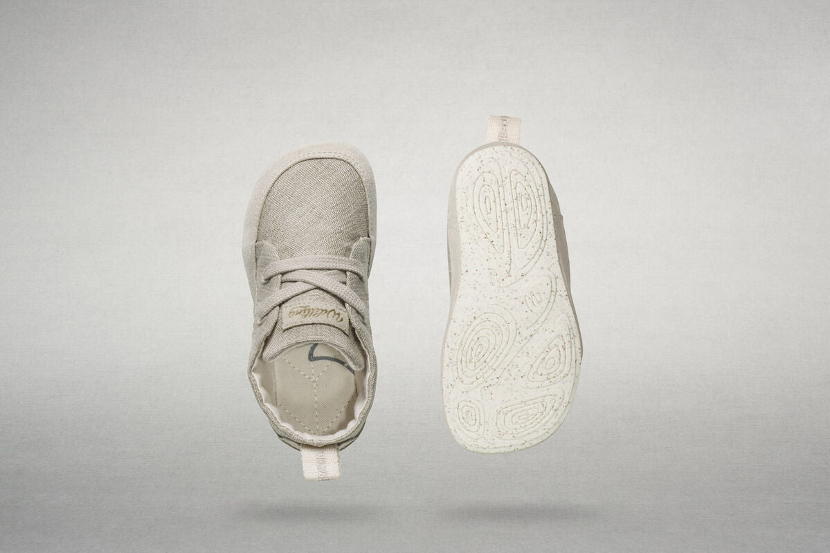 Product informationArun focuses on pure nature: its upper is made from undyed linen fabric in a robust canvas weave. In addition to the adult and children's versions, the Low Cut is now also available for toddlers. After all, the world is there to be explored and linen, as a durable natural material, is a loyal companion. Because of the linen used, the shoe may seem a little stiff at first. But don't worry, this is a typical characteristic of the natural material. It feels wonderfully soft after wearing it for just a short time. Arun's upper material was created in collaboration with Wildling partner VirgoCoop: the French-based cooperative is committed to establishing ecological and social textile supply chains from fiber to fabric. Arun's inner fabric is made of cotton from Cotonea – a brand that also stands for sustainable and transparent supply chains. The off-white outsole rounds off the understated and elegant look.