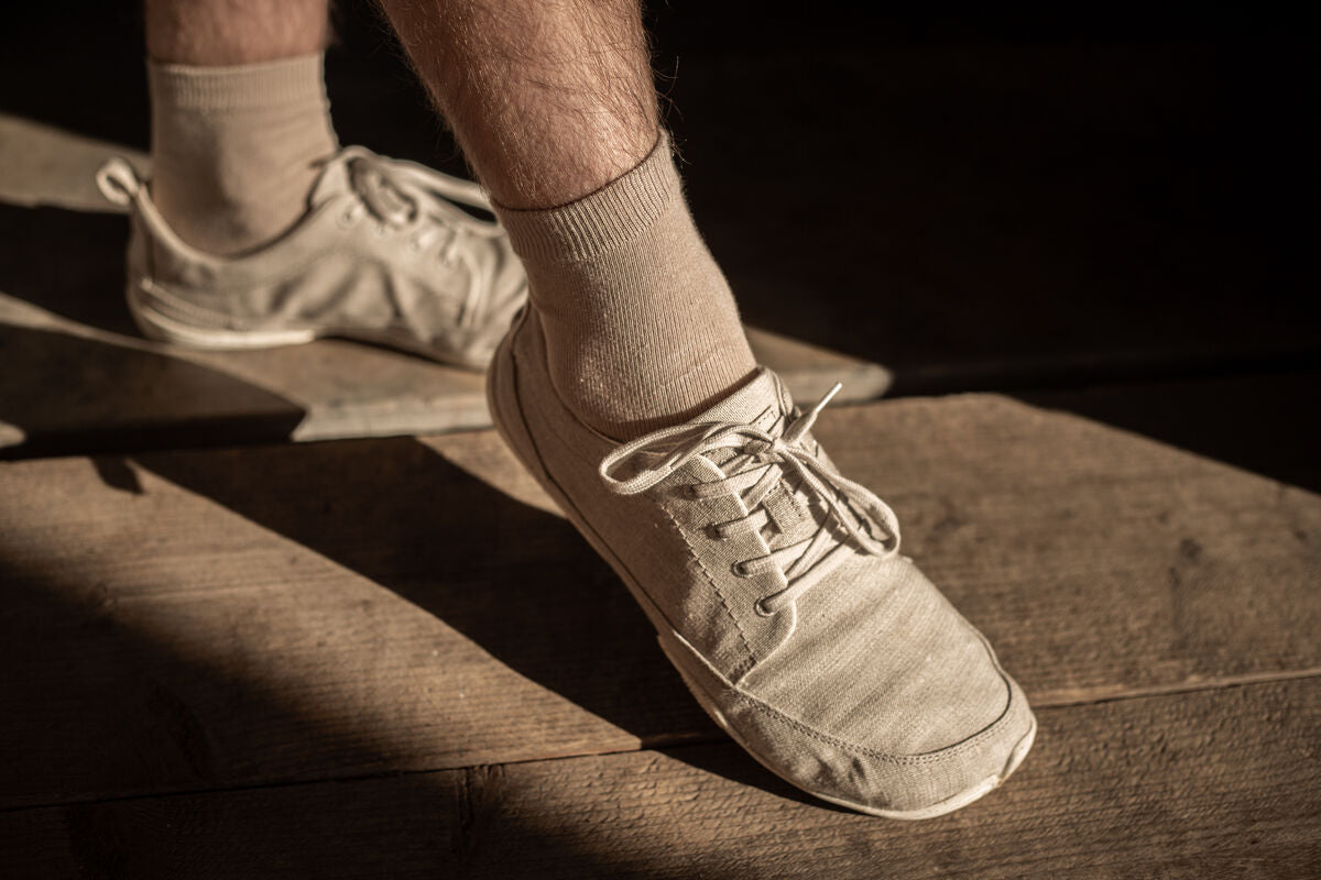 Pure nature: the upper material of the Arun model is made from undyed linen fabric in a robust canvas weave. The upper material was created in collaboration with Wildling partner VirgoCoop. VirgoCoop is a cooperative based in France that is committed to building ecological and social textile supply chains from fiber to fabric.