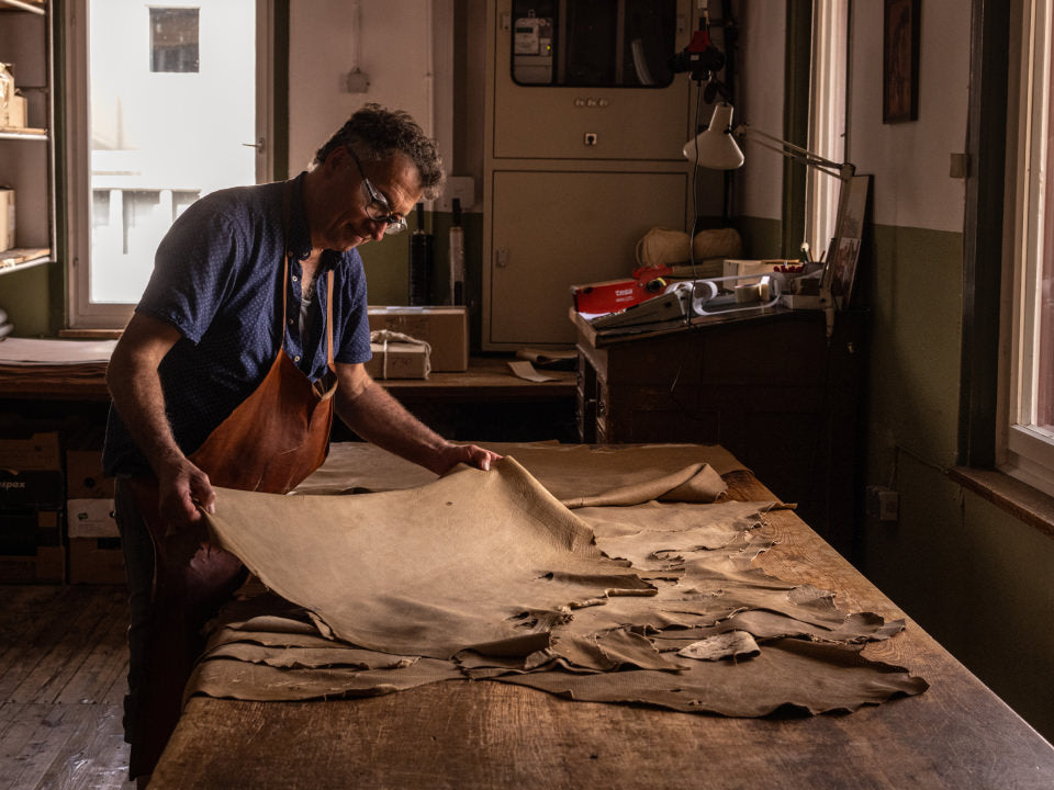 The search for a sustainable source led to ‘Wild Leather’ – deer leather, a by-product of hunting that would otherwise go to waste. A new partnership was formed with Nina Conrad and Alicia Linz, combining regional leathers with traditional tanning techniques to give them a new life.1 / of 41 / of 4 -