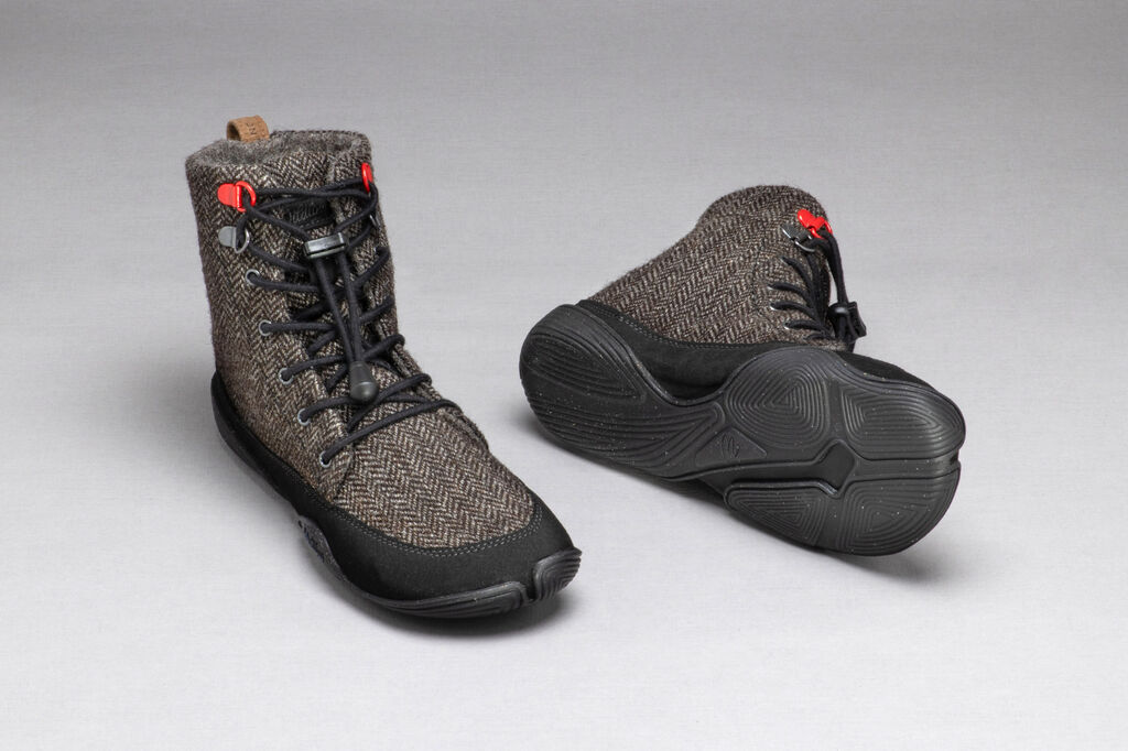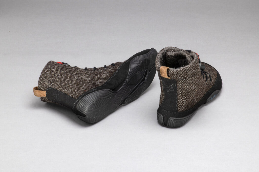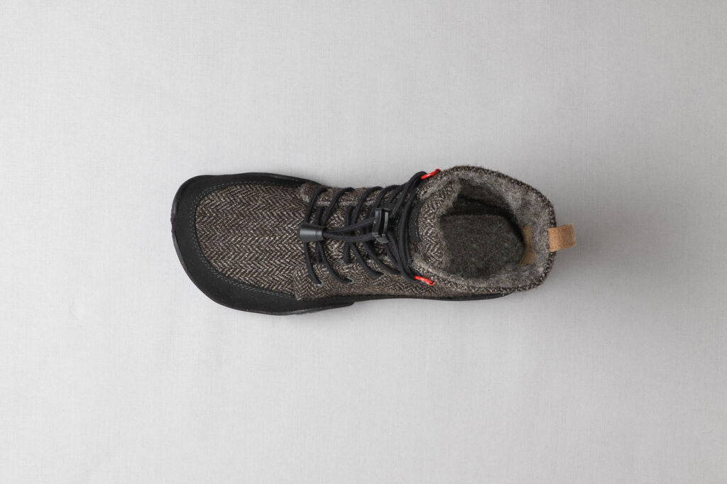 Product informationWool meets wool in this understated high cut – to keep feet comfy and toasty warm. The black upper with its herringbone pattern is made from 100% virgin wool sourced from our partner Nordwolle, and reflects the natural fleece color of the Pomeranian sheep whose wool was used to make it. The interior lining, which likewise comes from Nordwolle, is made from felted wool loden. It turns North Wolf into an out-and-out warmth-providing, naturally moisture-regulating, water-repellent Wildling shoe.