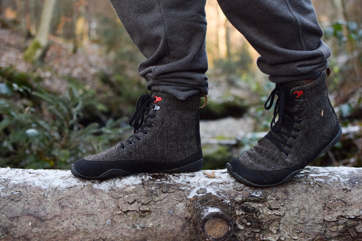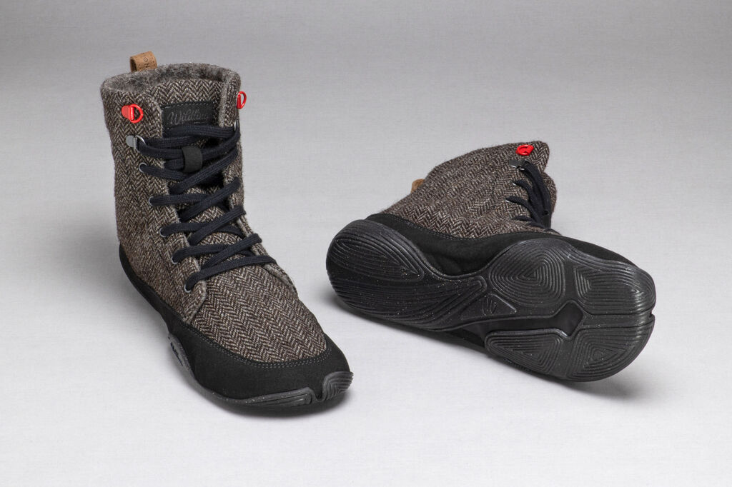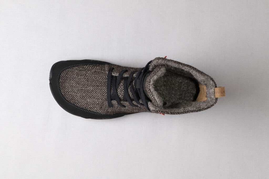 Product informationWool meets wool in this understated high cut – to keep feet comfy and toasty warm. The black upper with its herringbone pattern is made from 100% virgin wool sourced from our partner Nordwolle, and reflects the natural fleece color of the Pomeranian sheep whose wool was used to make it. The interior lining, which likewise comes from Nordwolle, is made from felted wool loden. It turns North Wolf into an out-and-out warmth-providing, naturally moisture-regulating, water-repellent Wildling shoe.